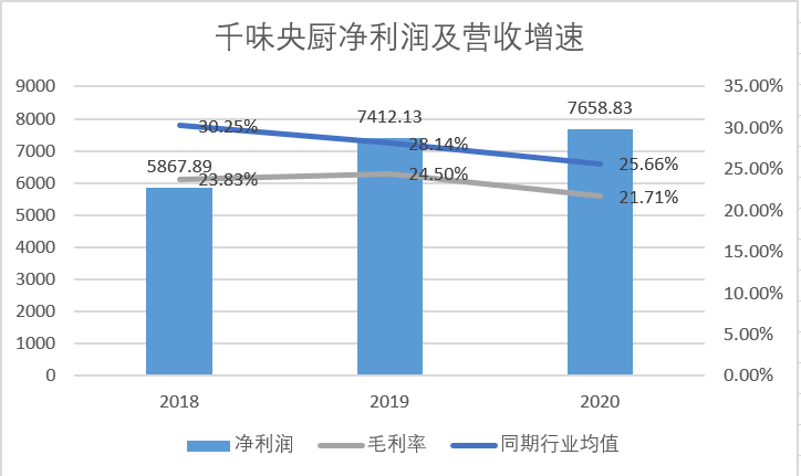 随着国内餐饮连锁化浪潮,千味央厨的优势得到最大发挥。招股书显示,千味央厨的营收和净利润连年上涨,增速稳定,但数字背后更努力的是整个餐饮市场。