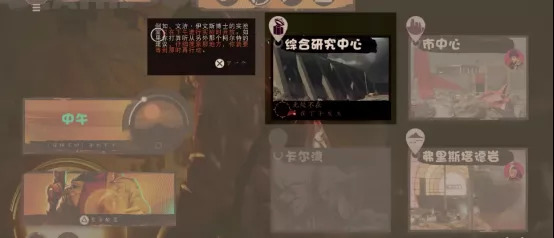 《死亡循环》的设计是非常核心向的,作为之前轮回留下帮助,用浮框的方式来进行信息提示,整体非常美式幽默。同时为了增加代入感,游戏中取消了小地图的设定,这意味着提升沉浸感的同时,极大拔高了游戏门槛,对于复杂的环境和建筑,需要玩家背地图式记忆路线,将不少休闲玩家拒之门外。