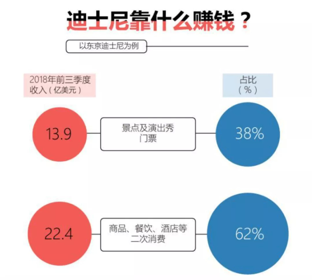 而东京迪士尼2018年前三季度收入中,商品、餐饮、酒店等二次消费占比高达62%。