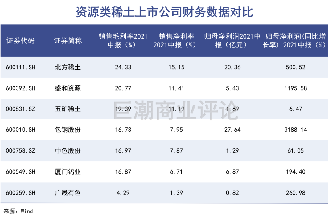 这座资源宝库孕育出了两大资源企业,均与稀土有关,一家是包钢股份(600010.SH)、另一个则是北方稀土(600111.SH)。