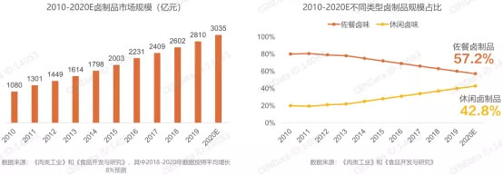 数年前卤制品从佐餐到休闲食品方面的延伸,进一步扩大了卤制品的消费场景和市场规模。