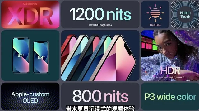 作为最受用户关注的产品重头戏,苹果也消耗了大量的篇幅展示了今年被用在iPhone 13系列的最新科技。在上一代的基础上,新机发生了一些细节上的变化,例如现在摄像头被排列在对角线上。前面板仍采用了陶瓷护盾,实现 IP68的防护等级,屏幕亮度提升28%,HDR峰值亮度1200nits,支持DolbyVision、HDR10和HLG,屏幕正面刘海缩小了20%。