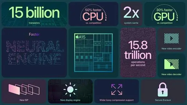 处理器方面,“迄今为止”最强的A15仿生芯片,再一次刷新了iPhone甚至是手机行业处理器的天花板;显示方面,采用了全新的XDR显示屏,可以具有更高的显示亮度、更细腻的细节展现,以及ProMotion自适应刷新率;续航方面,相比上一代多出数小时的使用时间。