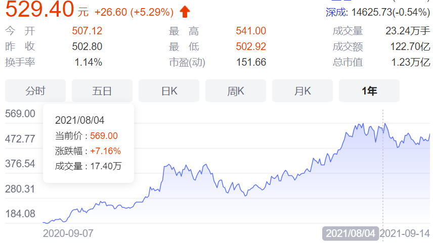 作为锂电头部企业的宁德时代,股价涨幅更具代表性,从2020年中的160元股价一路上涨至现在的529.4元,本年度最高股价曾触及569元的高位。