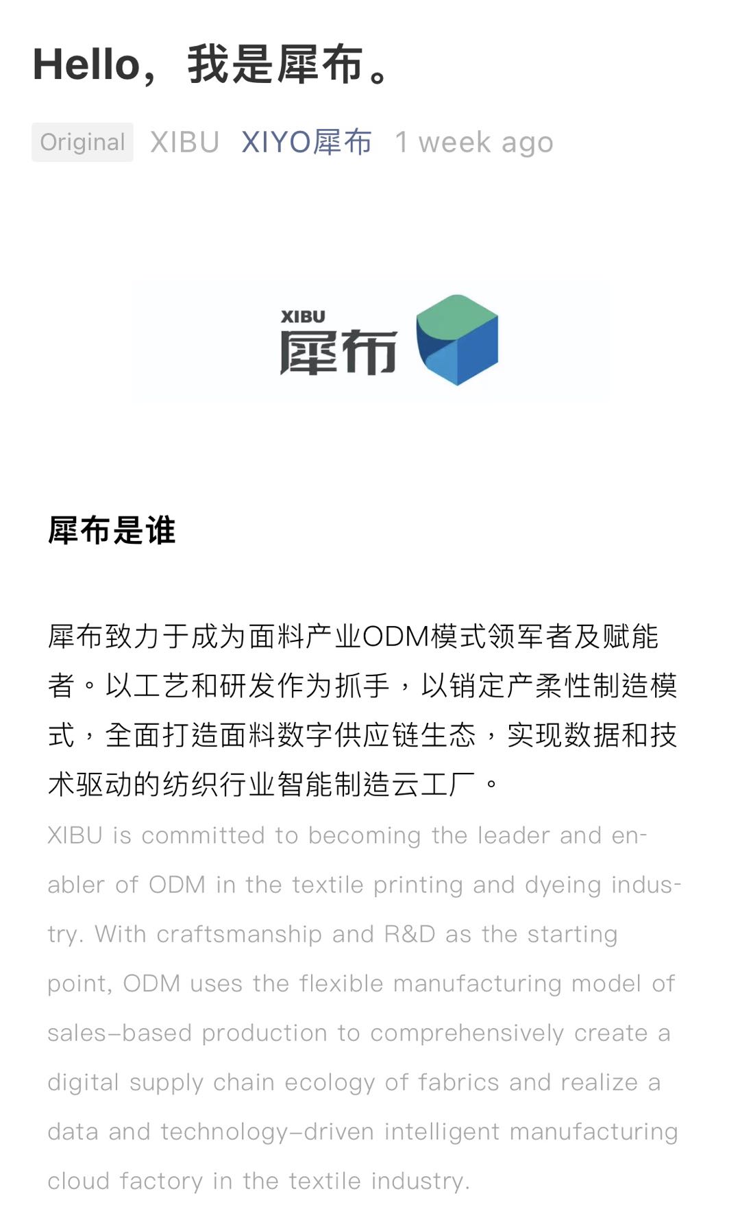根据该公司官方微信犀布的介绍,该公司建立了一个数字创新中心,可以将面料的颜色、物理特性、触摸手感均以数字化方式呈现,并通过对网络电商平台和品牌需求的数据分析,用AI智能算法来实现精准的面料研发。