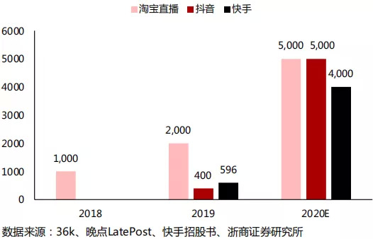 淘宝直播/抖音/快手直播电商GMV估计(亿元)