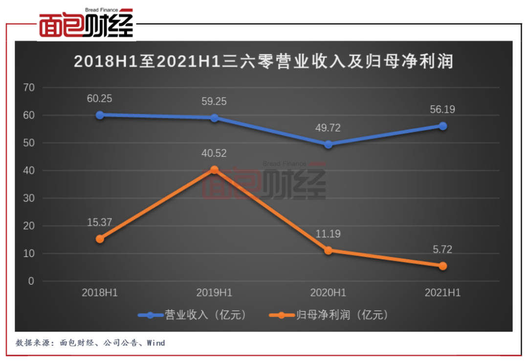 图6:2018H1至2021H1三六零营业收入及归母净利润