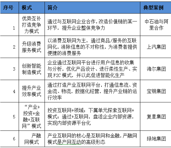 根据近年来的实践经验总结下来,企业集团典型的互联网+实践模式有如下几种: