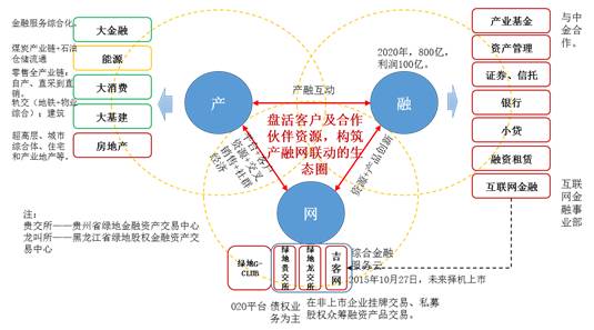 网络。突破简单的嫁接房地产业务的应用,而是将依托互联网技术,把金融作为工具,串联实业、消费、服务。当然,绿地集团前期积累的350万会员和1500万租户是网络平台发展关键。如吉客网将深入挖掘绿地集团“近百家酒店、近千个CBD、近万个社区”里的客户资源,将其转化为平台活跃用户,同时创新支付方式和积分体系,吸引用户持续消费平台上的金融产品和服务,提升用户黏性;平台将运用云计算和大数据技术,精准定位客户,为其定制所需金融产品和服务。