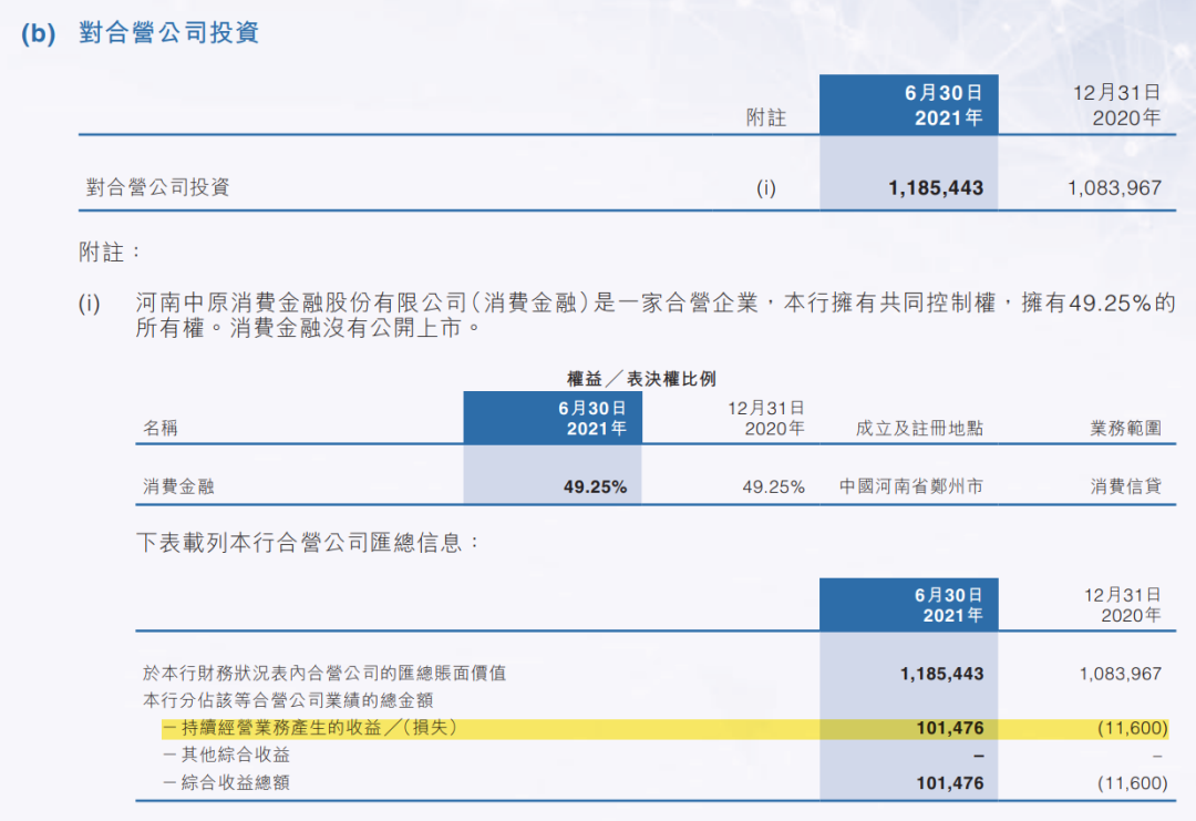与此同时,中原银行对中原消金的账面价值由年初的10.84亿元,增长至11.85亿元。
