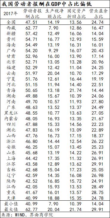 6、劳动报酬在GDP中占比偏低。以统计局已经公布的2017年数据计算,全国劳动报酬在GDP中占比仅为47.51%,同年美国劳动报酬占比超过53%、德国为55%(2020年分别升至55%、58%)。