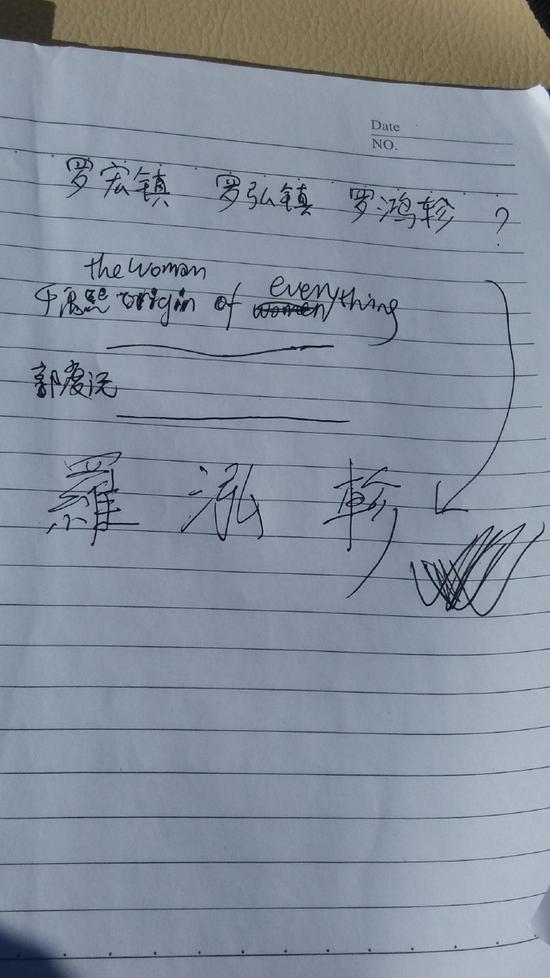 新浪娱乐将市面上流传的他的名字的3种中文写法写在纸上交给他,现场向他求证中文名字的写法(注:韩国人的姓名仍然保留了和汉字一一对应的习惯,而朝鲜人已经抛弃了汉字)。他看了之后,一把拿过记者手中的笔,一笔一划地在纸上写下了自己的中文名字,然后交给了记者,整个过程中面无表情,他的目光看上去仍然是一副漫不经心的样子。写完后他询问记者他名字的中文念法,嘴里“罗泓晨?罗泓进?劳泓轸?”地模仿着,这个时候的罗泓轸似乎很耐心,只要记者愿意继续教他,他可以一直模仿下去。