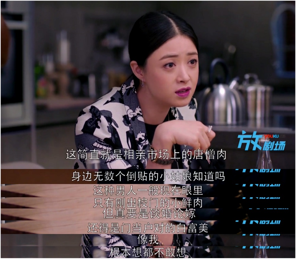 正因这一压力,所以樊胜美虽然工作这么多年,但仍旧没有存款,住的也是合租房中最便宜的房间。正如樊胜美对安迪说的那句话,“你和我们不一样,你买套房就是一句话的事情”。无疑,樊胜美是合租房三位女性中为改变自身阶层位置拼搏时间最长的一位,但这一经历也使得她深知“找得好,不如嫁得好”的道理,所以她各种的打扮自己、混迹于有钱人的场所,希望钓个金龟婿。另外,她也不断以自身的切身体会,教导着关雎尔和邱莹莹两个90后。