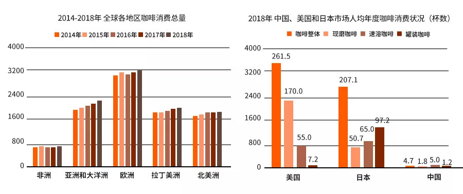 历史和受众方面的原因欧洲仍然是全世界咖啡消费的重心,但是亚洲和大洋洲咖啡消费总量的增长速度相对较快,市场潜力有所显现;