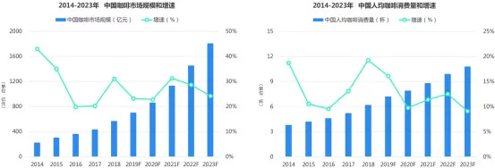 中国咖啡消费开始加速成长,在移动互联网的推动之下,瑞幸咖啡通过外卖衍生了咖啡消费的场景,进一步提升现制咖啡市场规模增速。