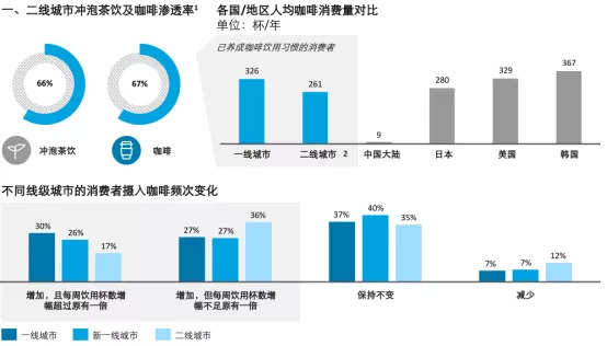 虽然预计2023年国人平均咖啡消费将超过10杯,但一二线城市已被养成咖啡饮用习惯的消费者已达到300杯/年,这一数据已无限接近成熟咖啡市场的水平。