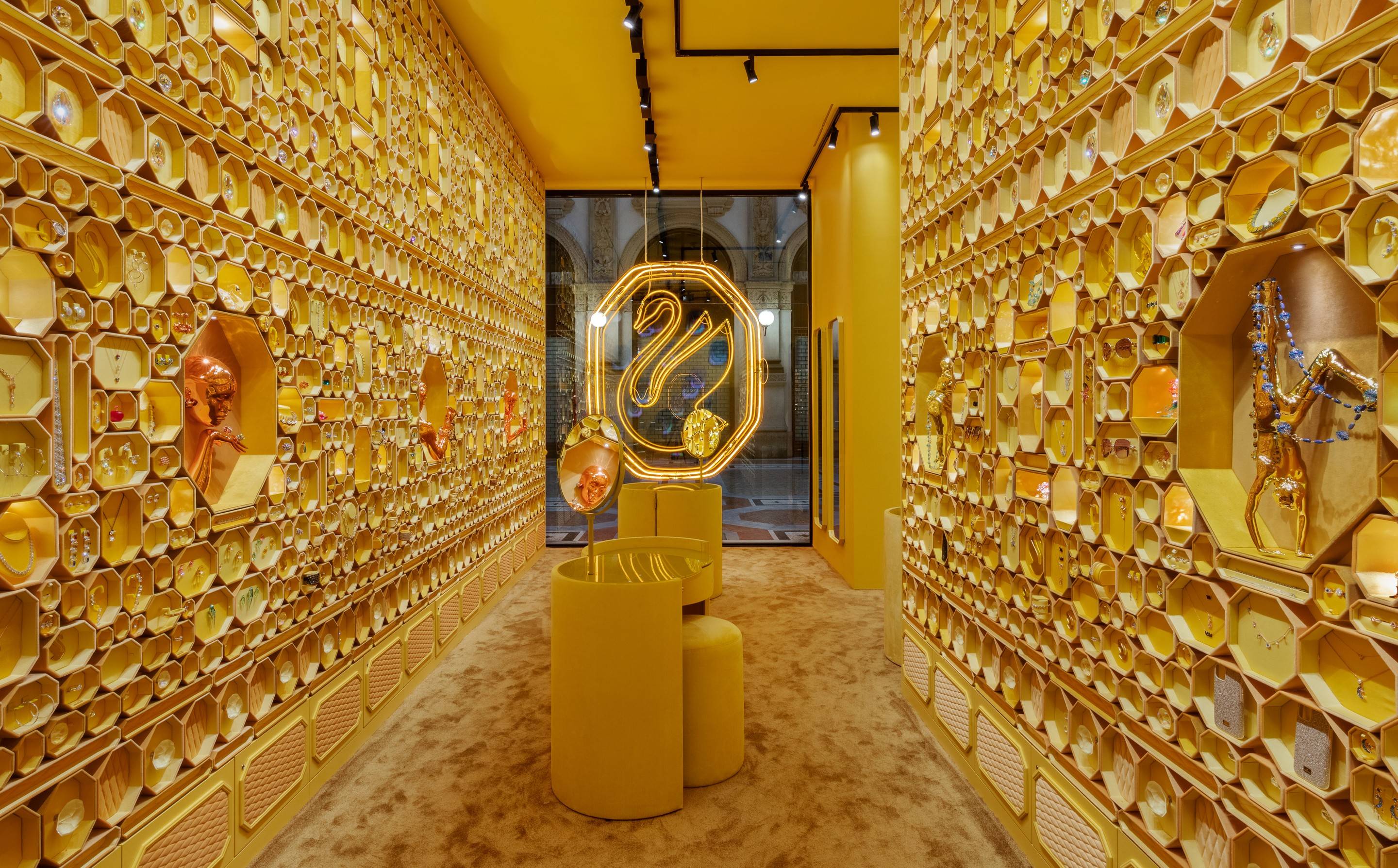 这是施华洛世奇于今年年初宣布推行“Instant Wonder”形象店概念后,在中国市场落地的第一家新概念旗舰店,同时也是品牌在全球范围内面积最大的旗舰店。该店选址在上海淮海中路的香港广场,临近新天地,蒂芙尼和Harry Winston等奢侈珠宝品牌的旗舰店也开在附近。