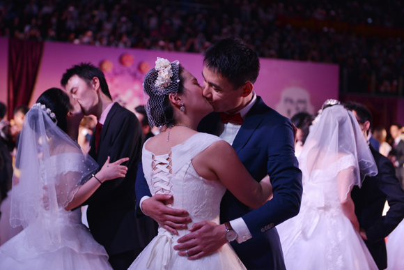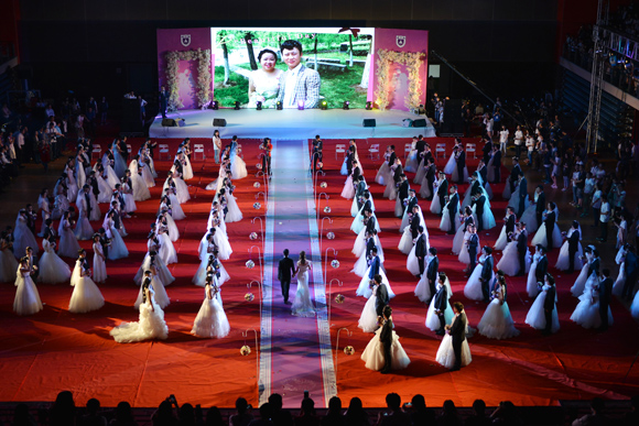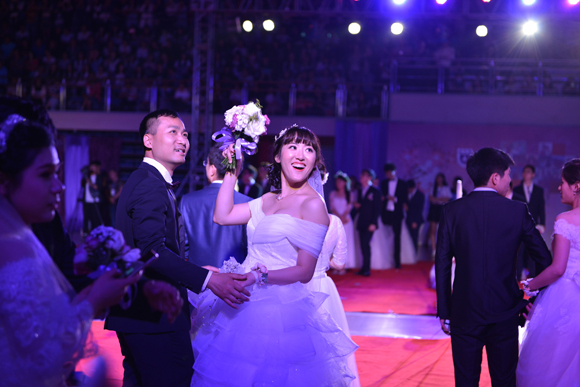 因“520”与“我爱你”谐音,一场以“520·爱在NJU”为主题的南大首届校园集体婚礼在南京大学仙林校区举行,