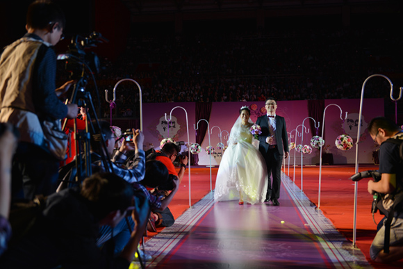 5月20日,南京大学迎来建校114周年校庆,在这特殊的日子里,一场以“520·爱在NJU”为主题的南大首届校园集体婚礼在南京大学仙林校区举行,114对南大校友在学校师生的共同见证下许下爱的誓约,走进婚姻的殿堂。