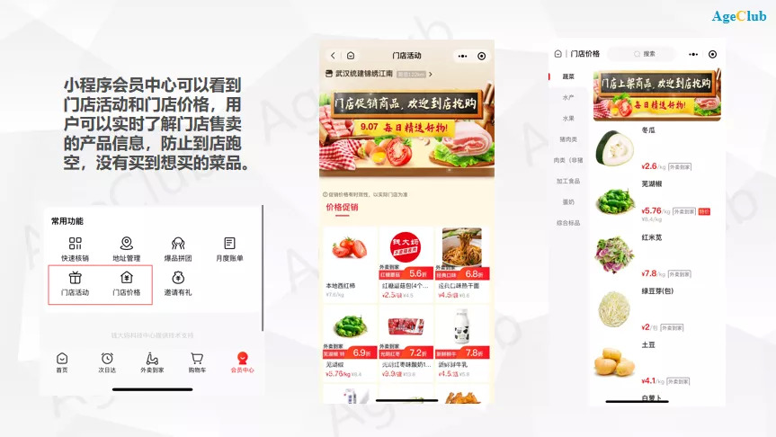 一直以来,钱大妈被讨论最多的就是“不卖隔夜肉”和“每晚定时打折”的销售模式,实际上,它采取小程序+社区生鲜店的布局为中老年人提供多样化的购买渠道和多类型的产品同样值得学习。