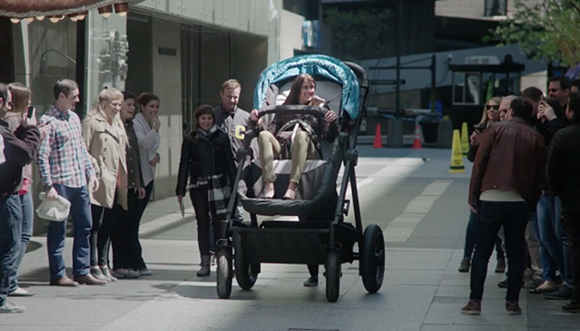 可以从广告中看出,婴儿车的用户体验非常棒。这些成年人像“巨婴”,惬意的坐在手推车里,把路人都看傻了。参与体验的人们无一例外都对Contours Bliss大加赞扬。毕竟,第一次体会当孩子的感觉,坐在软绵绵的车里,被别人推着欣赏风景,时不时还童心大发吮起指头,是件很开心的事吧。