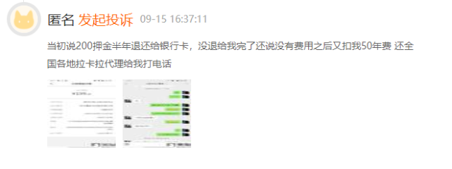 有用户投诉称,当初宣称200元押金半年后退回到银行卡,不料没退款还倒扣50元年费,全国各地拉卡拉代理给其打电话,疑似信息被泄露。
