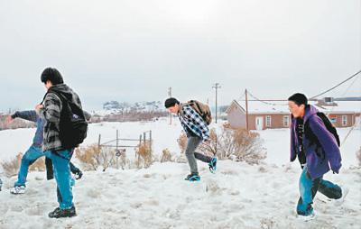 在美国新墨西哥州和亚利桑那州交界的一个印第安人村落,几名儿童走在放学回家的路上(2010年1月27日摄)。新华社发