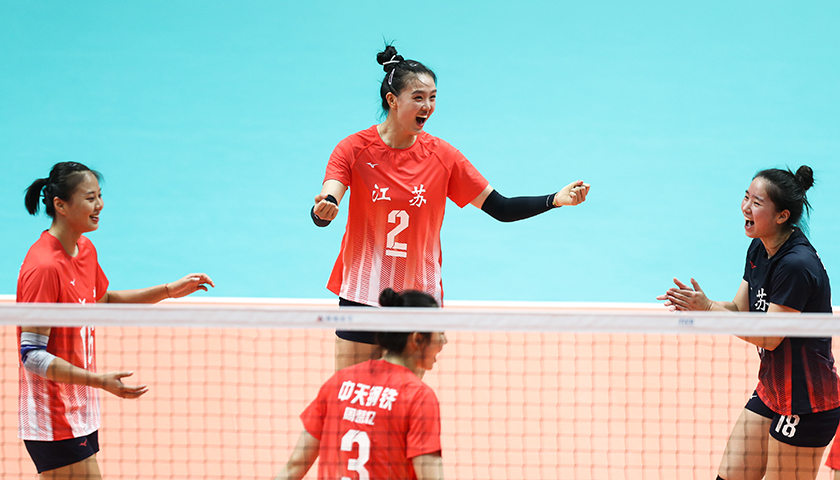 双方回到同一起点后,第三局战况激烈,江苏队在前半段领先的情况下逐渐被天津队追至22-22平,最终江苏队25-23拿下第三局,大比分2-1领先。