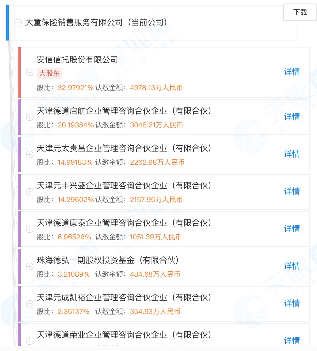 从工商信息可知,大童保险的股权较为分散。截至目前,安信信托是大童保险第一大股东。若此次拍卖成功,安信信托将彻底退出大童保险股东队列。