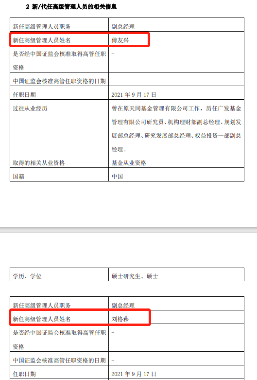 又有知名基金经理跻身公司高管队伍。今日,广发基金发布公告,提拔傅友兴、刘格菘升任公司副总经理。