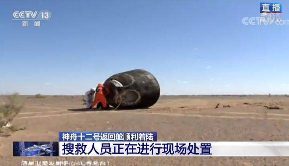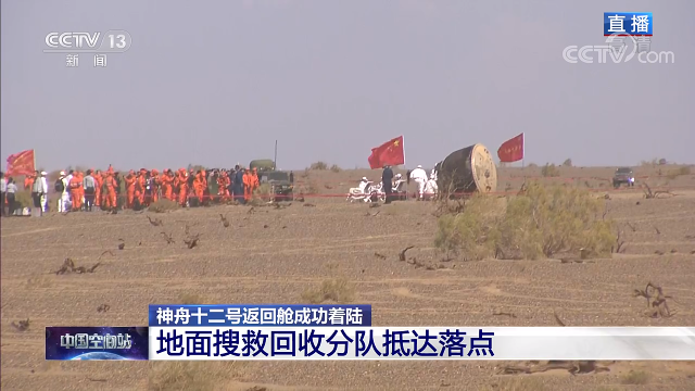 据中国载人航天工程办公室消息,北京时间2021年9月17日13时34分,神舟十二号载人飞船返回舱在东风着陆场成功着陆,执行飞行任务的航天员聂海胜、刘伯明、汤洪波安全顺利出舱,身体状态良好,空间站阶段首次载人飞行任务取得圆满成功。此次是东风着陆场首次执行载人飞船搜索回收任务。