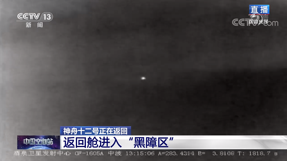 返回舱进入“黑障区”,地面光学设备捕获返回舱图像。