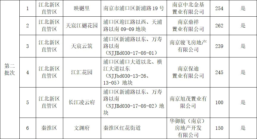 第二批次分别是:金基中北·映樾、天宸江樾、天宸云筑、保利江汇、千江凌云府、金陵华夏中心。报名时间拟定为9月22日至23日!