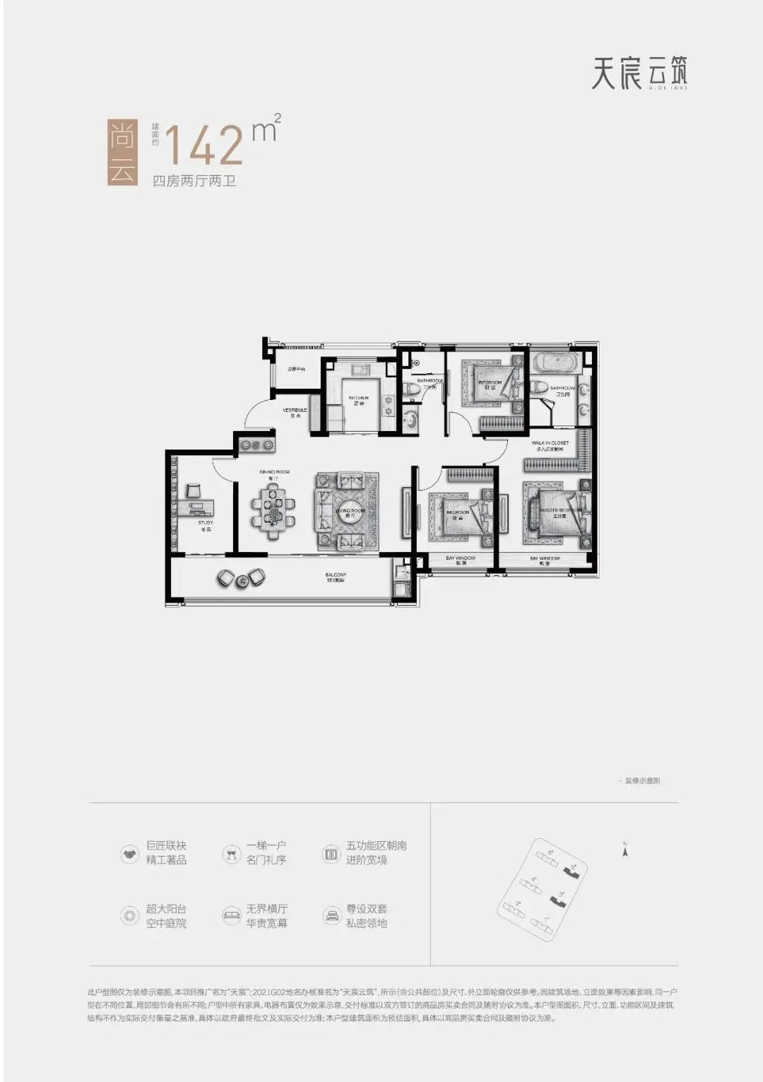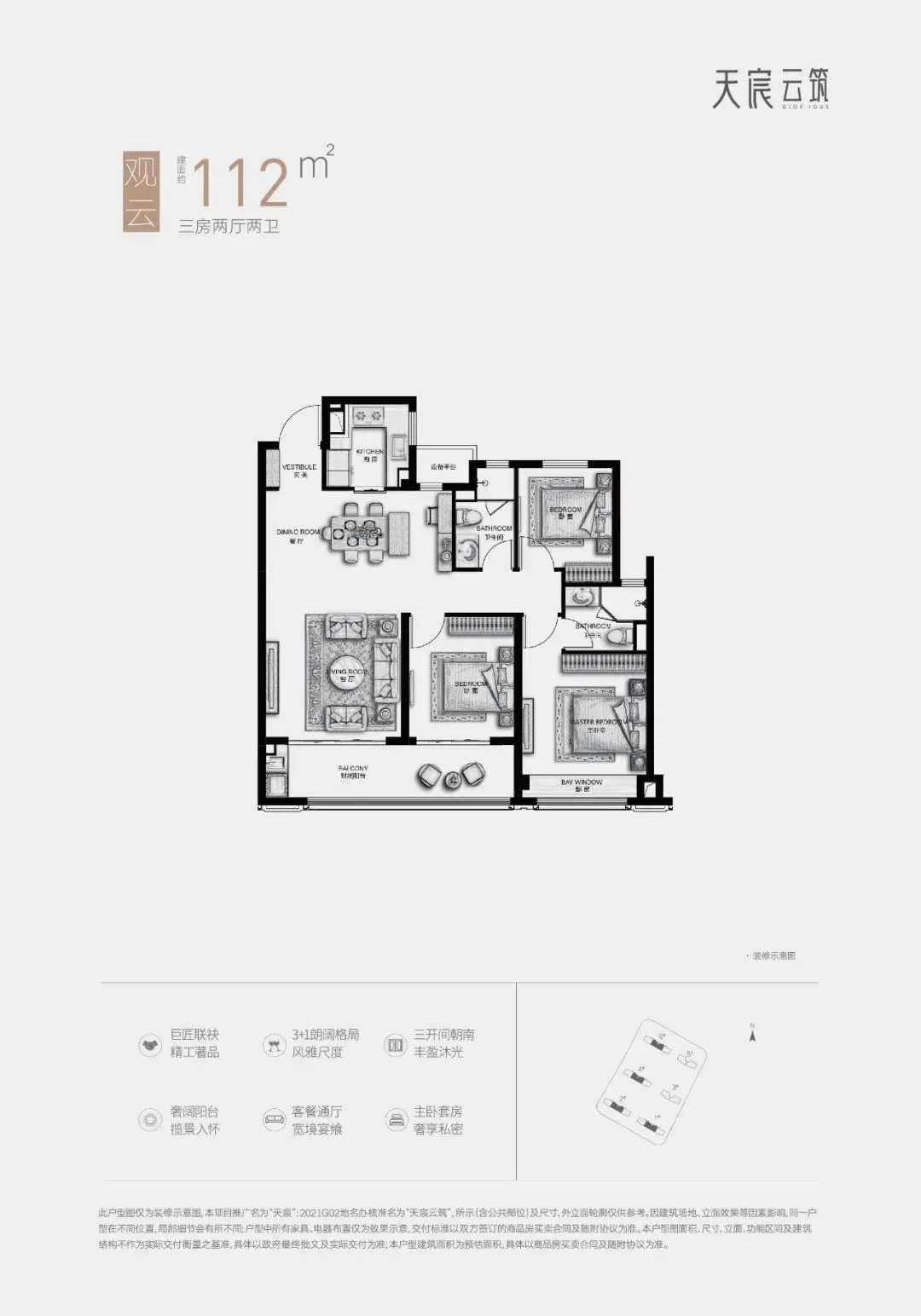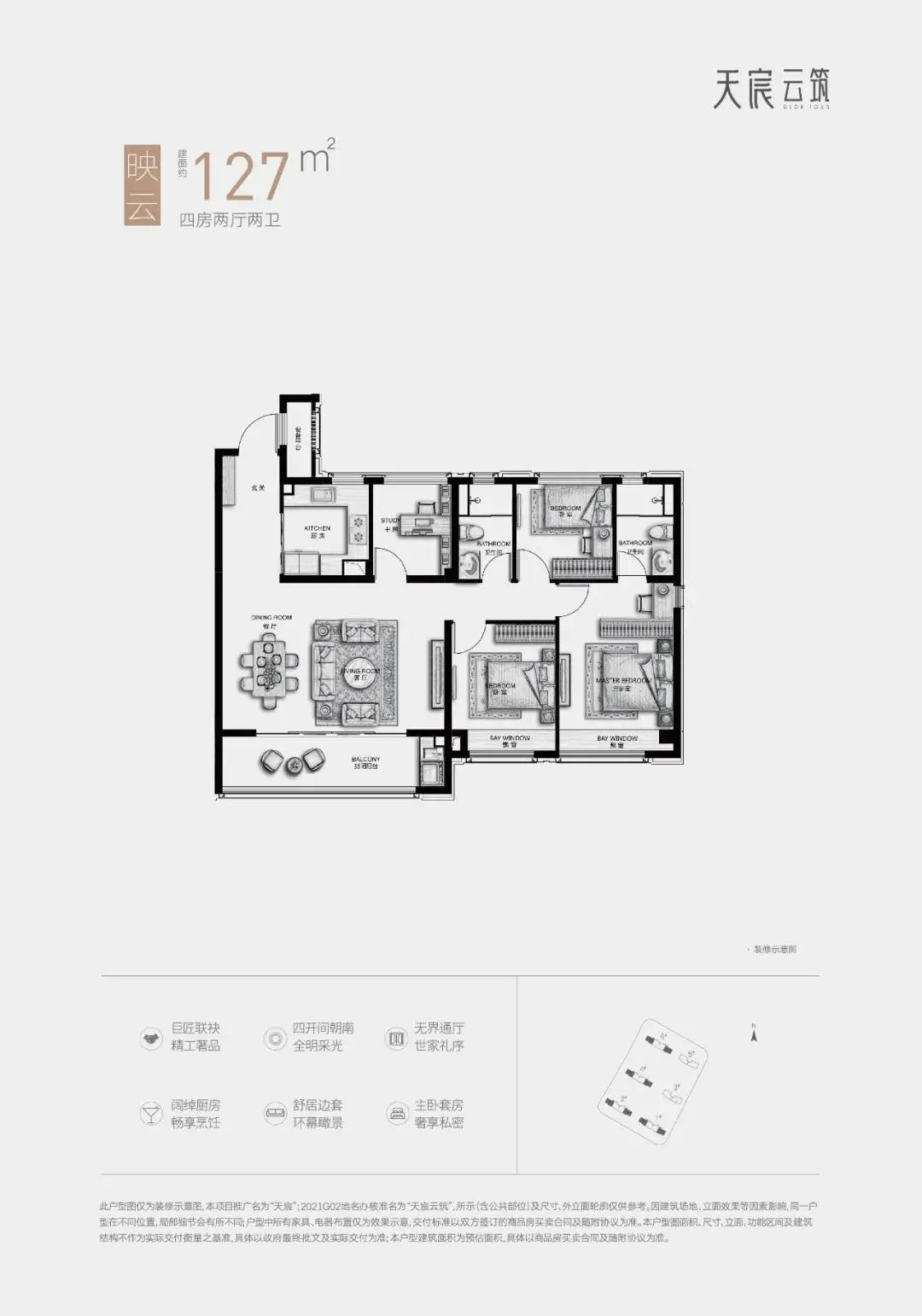 天宸云筑,此次加推4、5、6号楼,共239套房源,首开均价约3.4万/㎡,另有1900元/㎡升级装修包可选,户型建面约112、127、142㎡,首付8成起。首开去化约8成,目前1-3号楼还有房源在售。