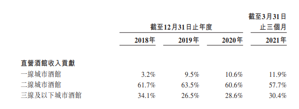 另外一个有趣的现象是,二三线城市海伦司小酒馆的经营情况似乎比一线城市的更好。为什么这么说呢?以2021年第一季度数据为例,一、二、三线城市门店平均单店贡献的营业收入分别为0.22%、0.27%和0.29%。