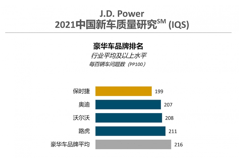 在J.D. Power今年9月发布的中国新车质量研究(IQS)报告中,路虎以每百辆车211个问题的成绩位列豪华车第四,高于行业水平(每百辆车216个问题)。