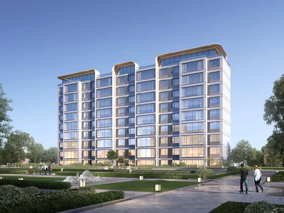根据效果图显示,项目将打造6栋9层低密的住宅,外立面简洁大方,顶部设计感十足!