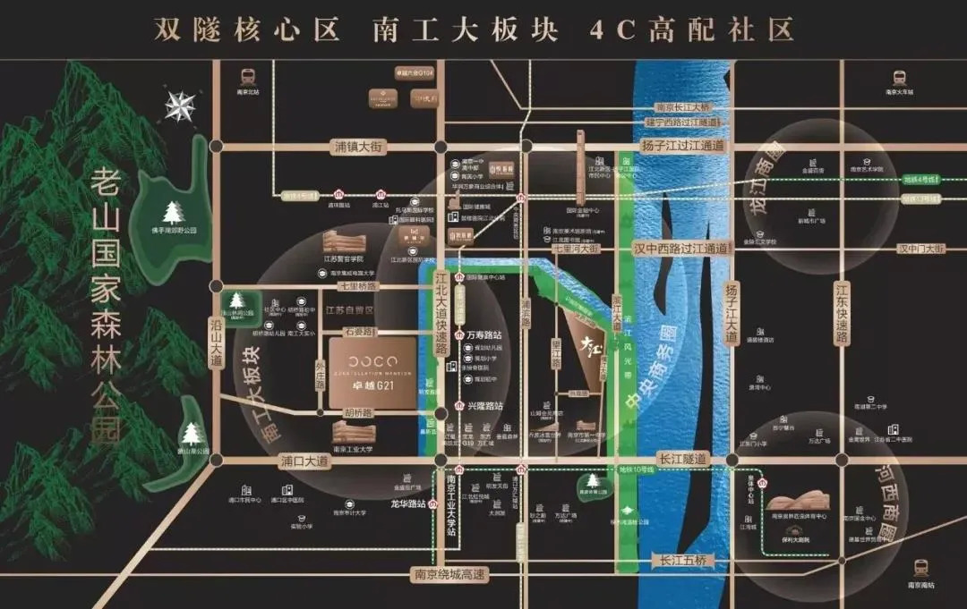 该项目周边配套十分完善,紧邻地铁10号线,临近江北大道快速路、浦口大道及长江隧道,另外周边商圈环伺,鼓楼医院江北国际医院、江苏省人民医院浦口分院等也在项目周边。