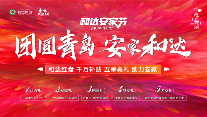 这次,和达安家节中秋专场,拿出十足诚意,五重豪礼,千万补贴!超值钜惠助力安家青岛!
