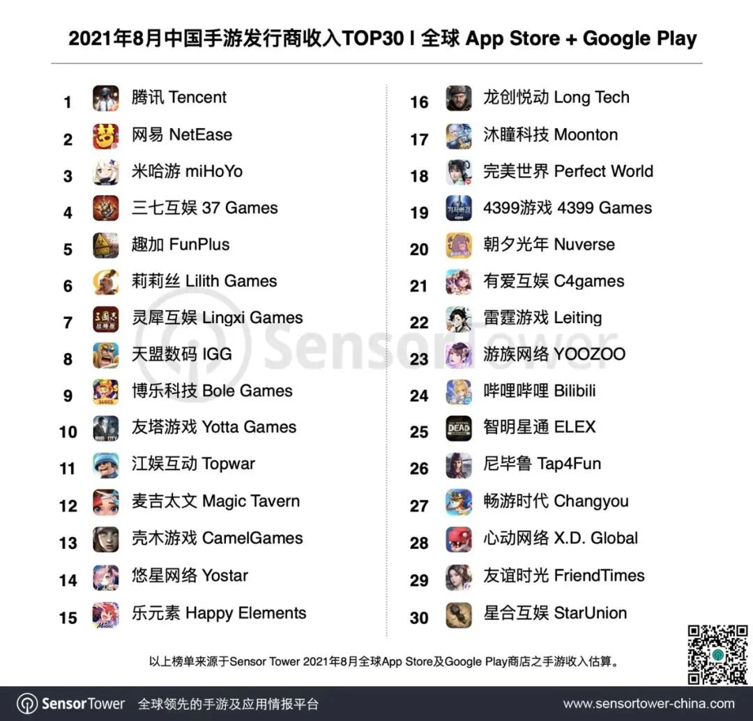 据2021年8月SensorTower商店手游开发商排行榜数据,前30名的手游开发商中,有一半的游戏公司主要业务都在海外,许多游戏公司的公司介绍中都会写道;“我们是一家立足全球的公司。”