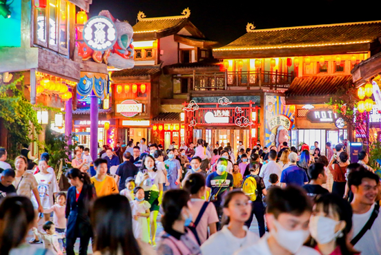 在成渝地区双城经济圈建设重大历史机遇下,作为融创在经济圈内核心落子的重庆融创文旅城,突破传统旅游度假经营模式,创新打造了夜间消费、网红地标、体育赛事、演艺节会等文旅消费新场景。重视文化内核的挖掘和植入,在现代文旅综合体基础上,融合巴渝文化传统内涵,既有完美复刻巴渝文化的建筑布景,也有各类非遗展示和文化体验;既让游客悠闲静品消磨时光,也可狂欢躁动随时沸腾……