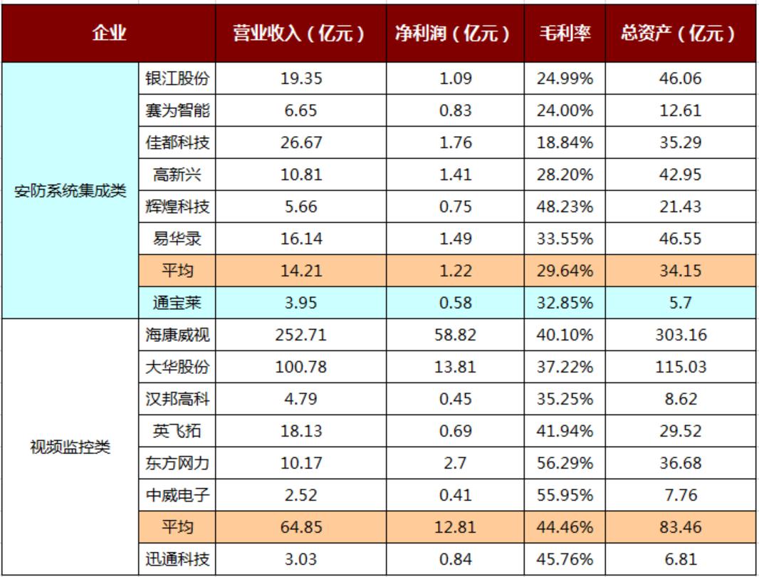 中安网的调查数据显示,截至2015年底,国内安防企业共有2.34万家。这些企业大致可以分为四个梯队,分别为由海康威视、大华股份(002236.SZ)所组成的第一梯队,由佳都科技(600728.SH)、银江股份(300020.SZ)、英飞拓(002528.SZ)、易华录(300212.SZ)等组成的第二梯队,由赛为智能(300044.SZ)、辉煌科技(002296.SZ)、汉邦高科(300449.SZ)、中威电子(300270.SZ)等组成的第三梯队以及由其他中小企业所组成的第四梯队。第一梯队的企业业绩规模大、资产体量突出,具体表现为其年收入达到百亿级别,净利润也均能维持在10亿元以上。第二梯队的企业虽然年收入远不及第一梯队,但也均能实现每年数十亿元的营业额,净利润也基本能保持在1亿元以上。第三梯队的企业业绩规模小,仅有数亿元,每年的净利润也仅在几千万元,不过,由于它们都已经上市,从而有别于其他中小企业。当然,在如此数量众多的企业当中,隶属第四梯队的中小企业数量最多,占比超过90%。