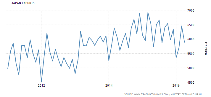 经济学家们普遍认为,日元升值导致了4月进出口的糟糕表现。自今年年初以来,日元兑美元汇率上涨了10%,这降低了出口主导型企业汇回国内的利润。此外,分析师们认为,4月的贸易数据还反映出外部需求的疲软。4月,日本对中国出口下滑7.6%。中国是日本最大贸易伙伴。彭博的报道说,上个月熊本地区地震对供应链造成冲击,可能也影响了某些产品的出货量。报道援引分析人士的观点认为,4-6月期间日本出口可能会很疲软,从而给日本经济带来下行风险。