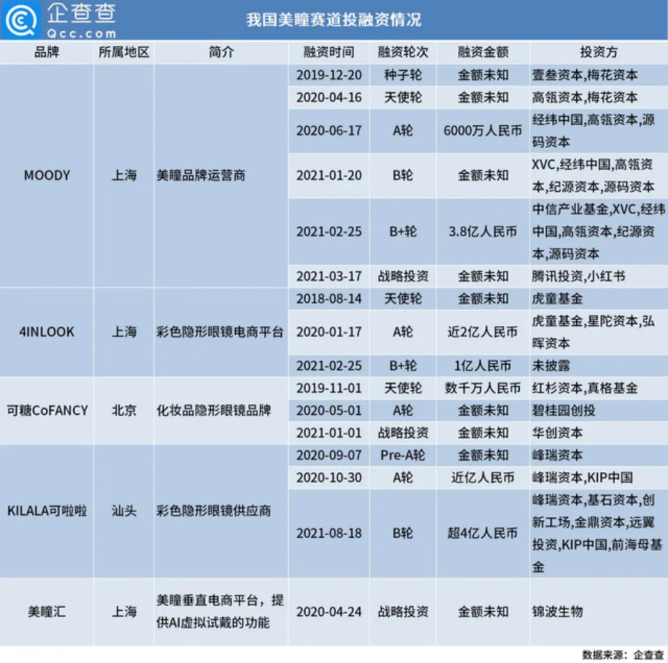 可啦啦更是在今年拿下超4亿元B轮融资,刷新美瞳赛道融资记录。