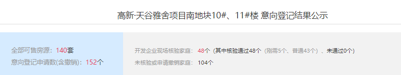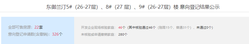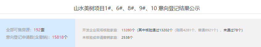 1、面积区间主要集中在约106—119㎡的三室,一共19套,另外有约142㎡的四室户型3套,从价格到面积,该项目都是妥妥的刚需盘,在主城区单套总价不超过150万元的项目着实稀少。但本次房源数量不多,仅22套,前期意向登记人数达326个,但现场核验家庭只有46个,虽然仍要摇号,还是无法忽视大量的未核验或申请撤销家庭数量;
