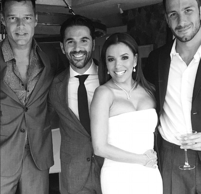 据有关媒体报道,41岁的伊娃和47岁的丈夫选择在巴耶-德布拉沃一座湖畔小镇的私人别墅完婚。婚礼当天新娘伊娃身穿白色礼裙,一头长发散了下来,并稍稍烫了卷看上去温婉优雅;新郎身穿灰色的西服三件套,硬朗帅气。照片上,婚礼中的二人站在圣坛前,夕阳的余晖为圣坛巨大的白色十字架和被玫瑰缠绕的拱门镀上了一抹童话般的色彩。马里奥·洛佩兹和瑞奇·马丁也都出席了伊娃的婚礼,并都在社交媒体上分享了婚礼当天的照片。其他一些出席婚礼的明星还包括梅兰妮·格里菲斯以及杰米·卡米尔。