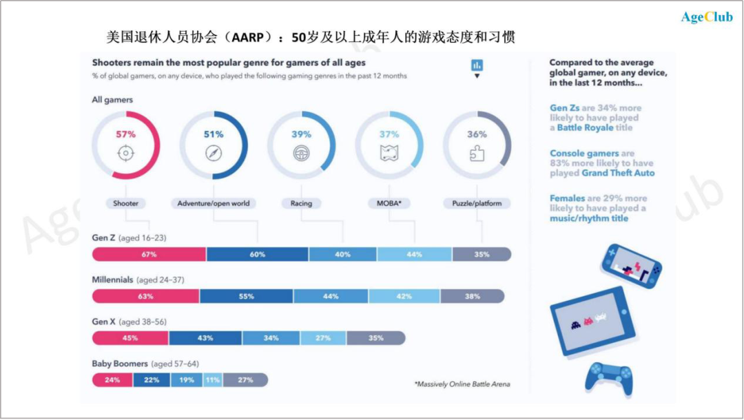 通过对当前银发玩家的洞察,AgeClub总结出三大具有代表性的银发玩家类型: