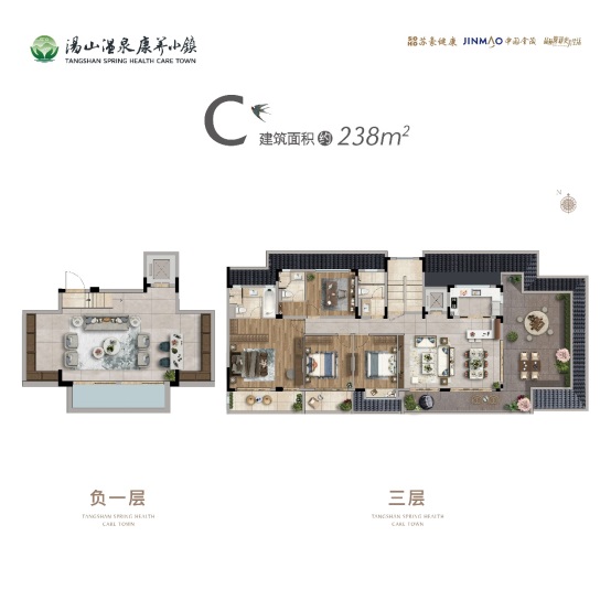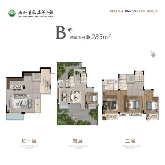 在空间设计营造上,小镇大师院墅,考究现代金陵隐贵的极致生活品味,以大师品味提升空间的独特审美。产品户型一层二层为下叠建筑面积约285㎡,三层为平墅建筑面积约238㎡。