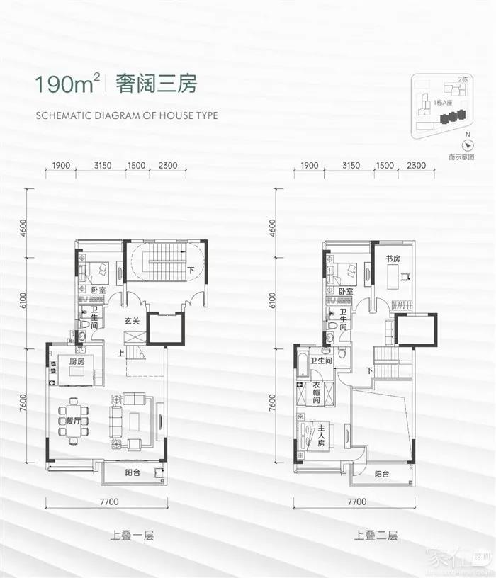 190平方米的复式住宅被设计成“3+1”房,其中主卧位于二层,上下两层各带有一个观景阳台,生活起居可谓是宽松舒适。