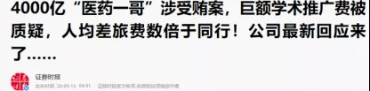 大概一年多前,医药龙头恒瑞医药就曾经因为披露出过高的“学术推广”费用,遇到媒体质疑变相行贿。